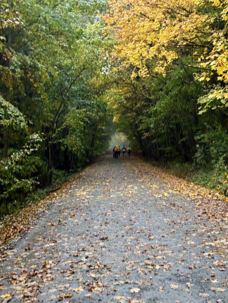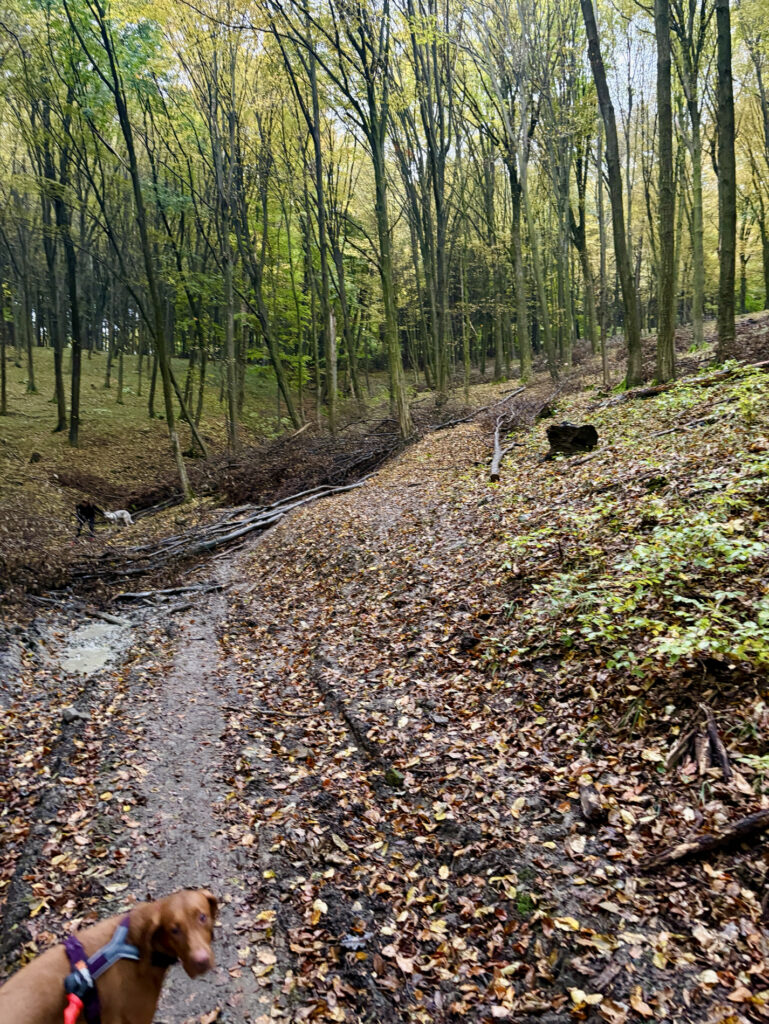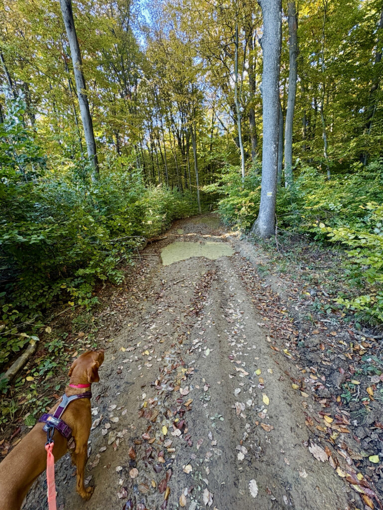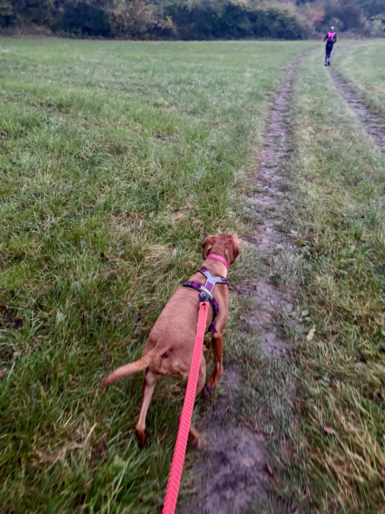 V 7:00 zazněl hromadný start. My jsme se s Brixie zařadili spíše do druhé poloviny, mezi „procházkáře“ s většími batohy, a šli jsme svým tempem. Bylo zábavné sledovat ten rozdíl: běžci vyrazili rychle s malými batůžky, zatímco my jsme se drželi naší filozofie – je to dogtrekking, ne dogrunning.