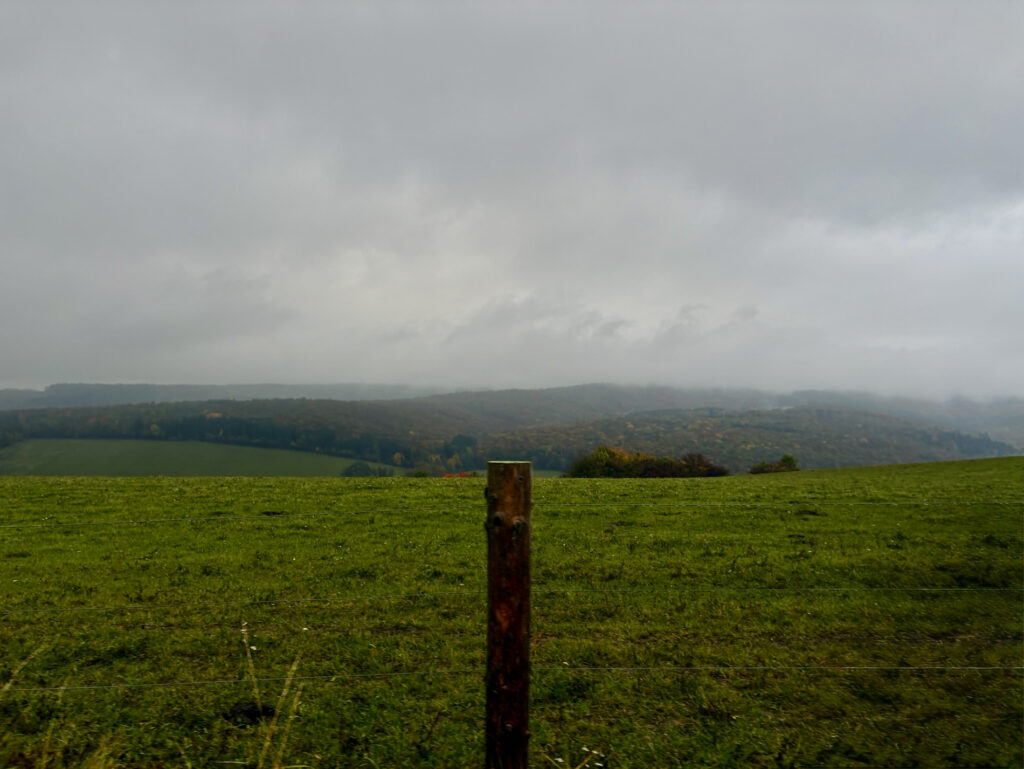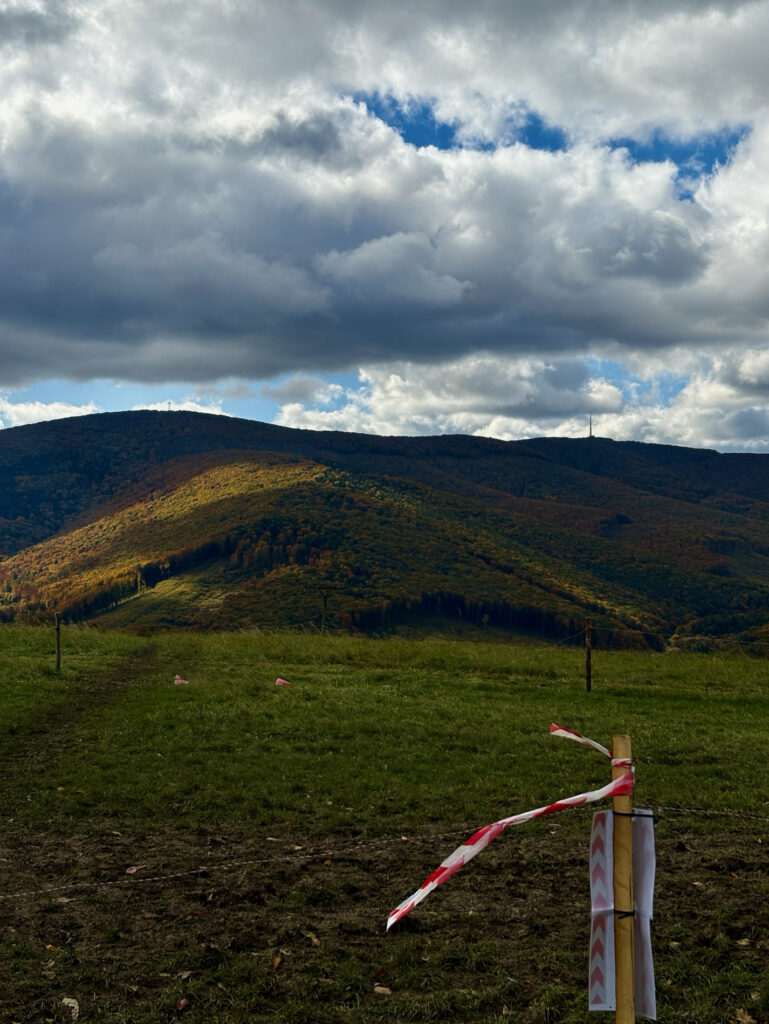 Cesta zpočátku docela ubíhala, ale na Velké Javořině přišla první větší krize. Kvůli dešti a mlze bylo obtížné se s Brixie domluvit, kde má jít. Terén se navíc změnil v pekelnou kombinaci vysokých mezí, kamenů, kořenů a neuvěřitelně mazlavého bláta. V tom klouzavém terénu se to stalo: natáhnul jsem si tříslo. Skvělý start, že?