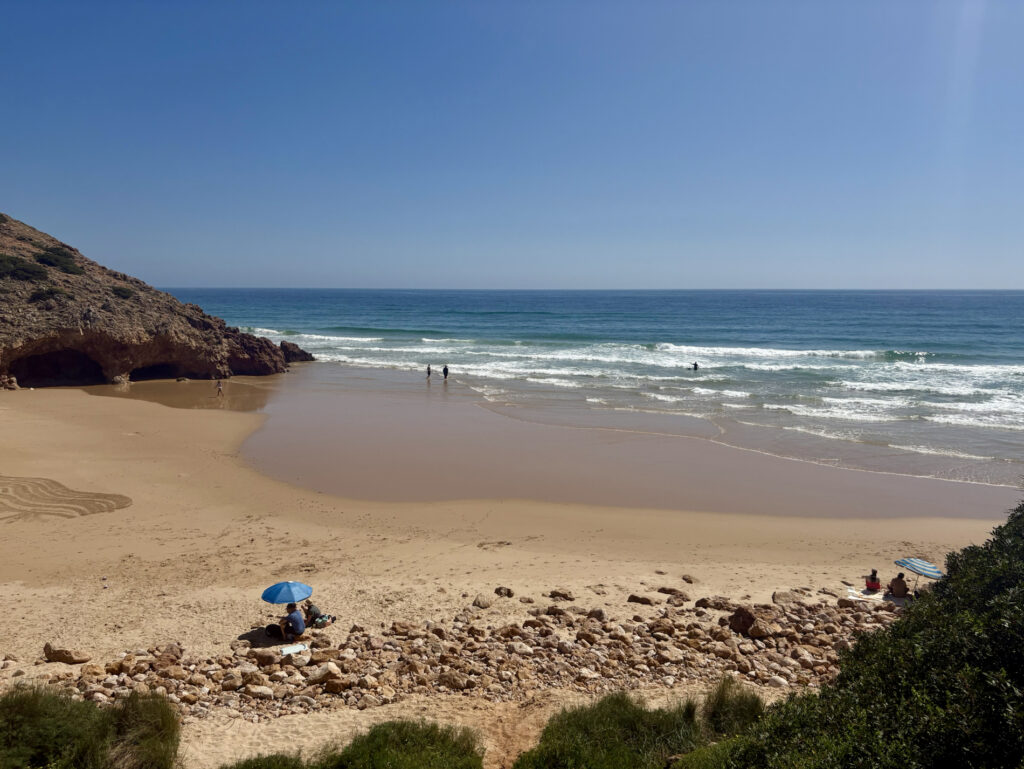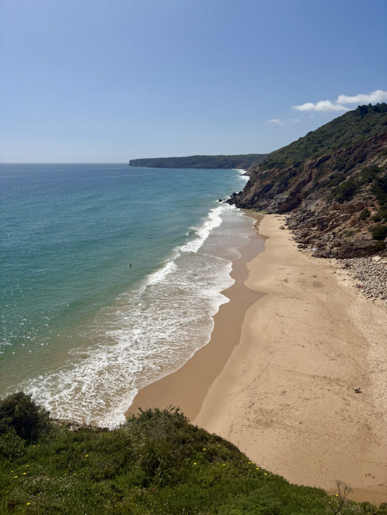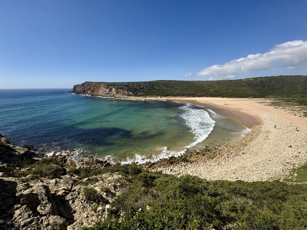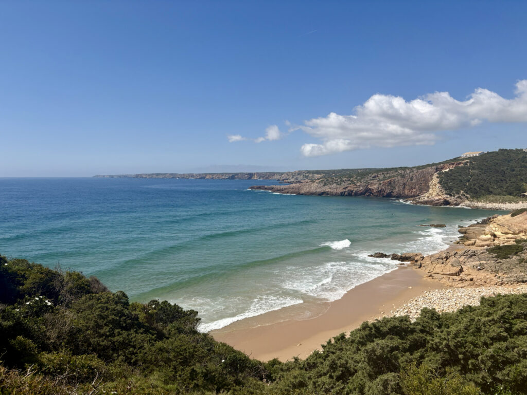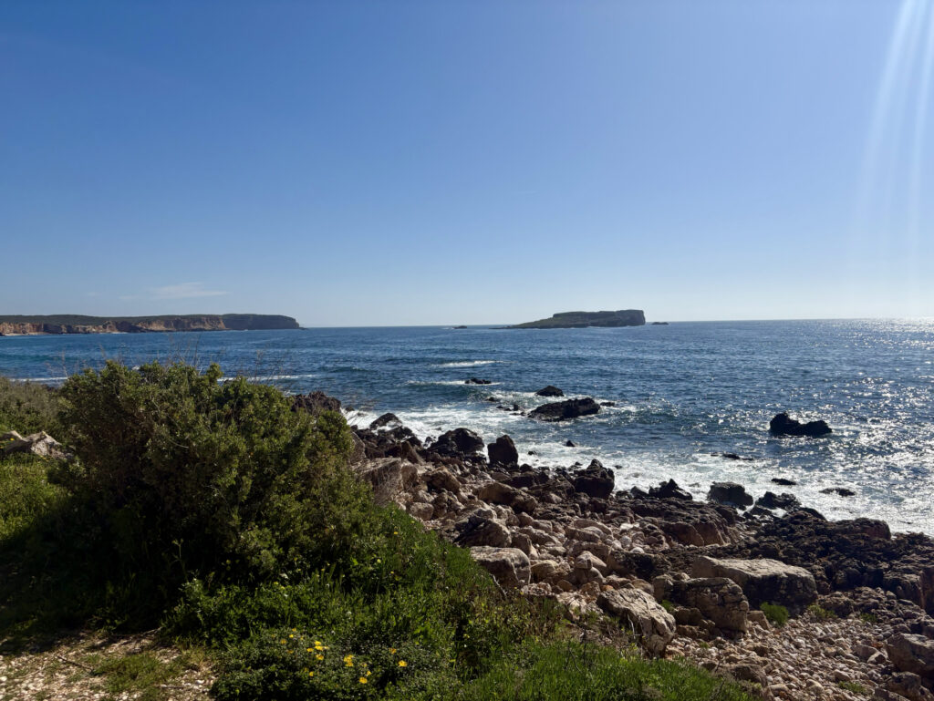 V 13:50 vcházím do Salemy a potkávám tam dva Čechy. Je to pár z Ostravy, který vyrážel z Lagosu. Sedáme na pivo, kecáme o cestě a oni mě ujišťují, že ten zbytek je zvládnutelný. To mě nakoplo. Salema je krásná a autentická, na rozdíl od městeček jako Burgau nebo Luz, která mi přišla až moc „načančaná“ a umělá. Od čtyř odpoledne se mi šlo úplně nejlépe – slunce už tolik nepálilo, sundal jsem kapuci a užíval si ten příjemný vítr.